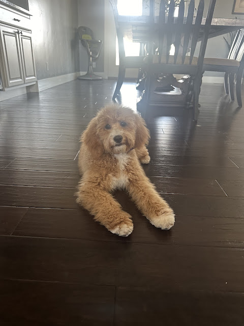 Meet the newest member of the Webb family, Daisy. She is a mini golden doodle. The kids have been asking for a dog for a long time and I've fallen in love with the golden doodle dogs. Well, Travis finally agreed. We found a breeder in Mountain Home and she had some puppies that were ready for their homes and in the color I really wanted.